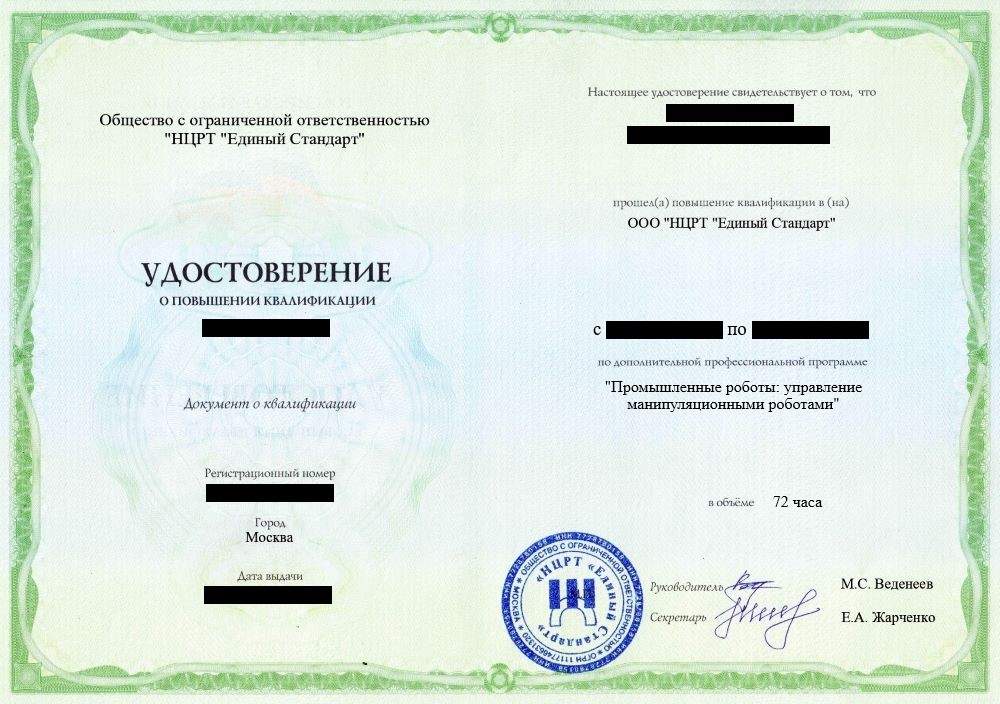 - Удостоверение о повышении квалификации установленного образца. Срок действия: 5 лет