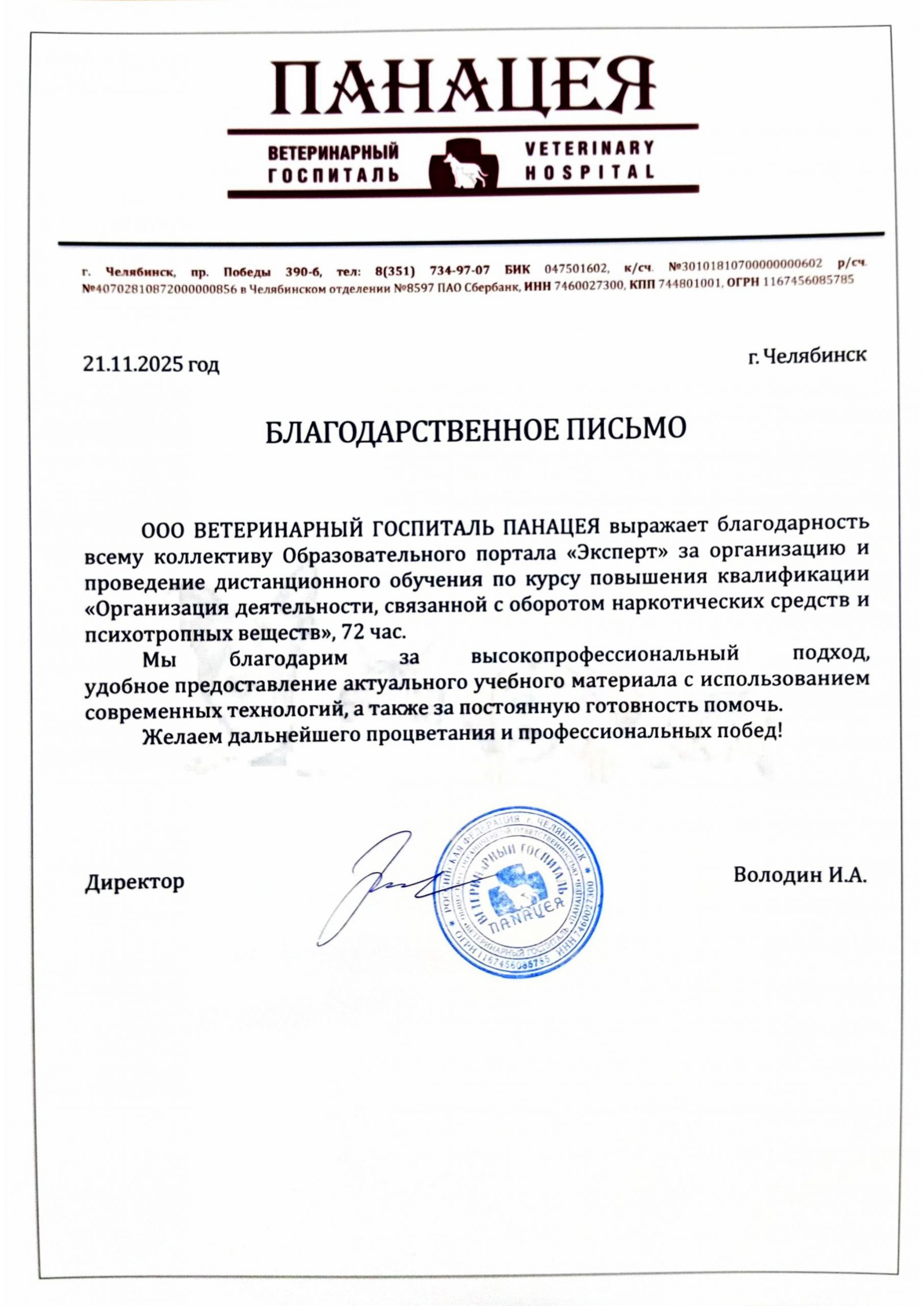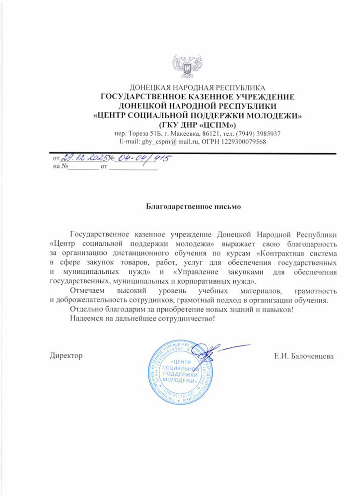 Все благодарственные письма → смотрите на этой странице