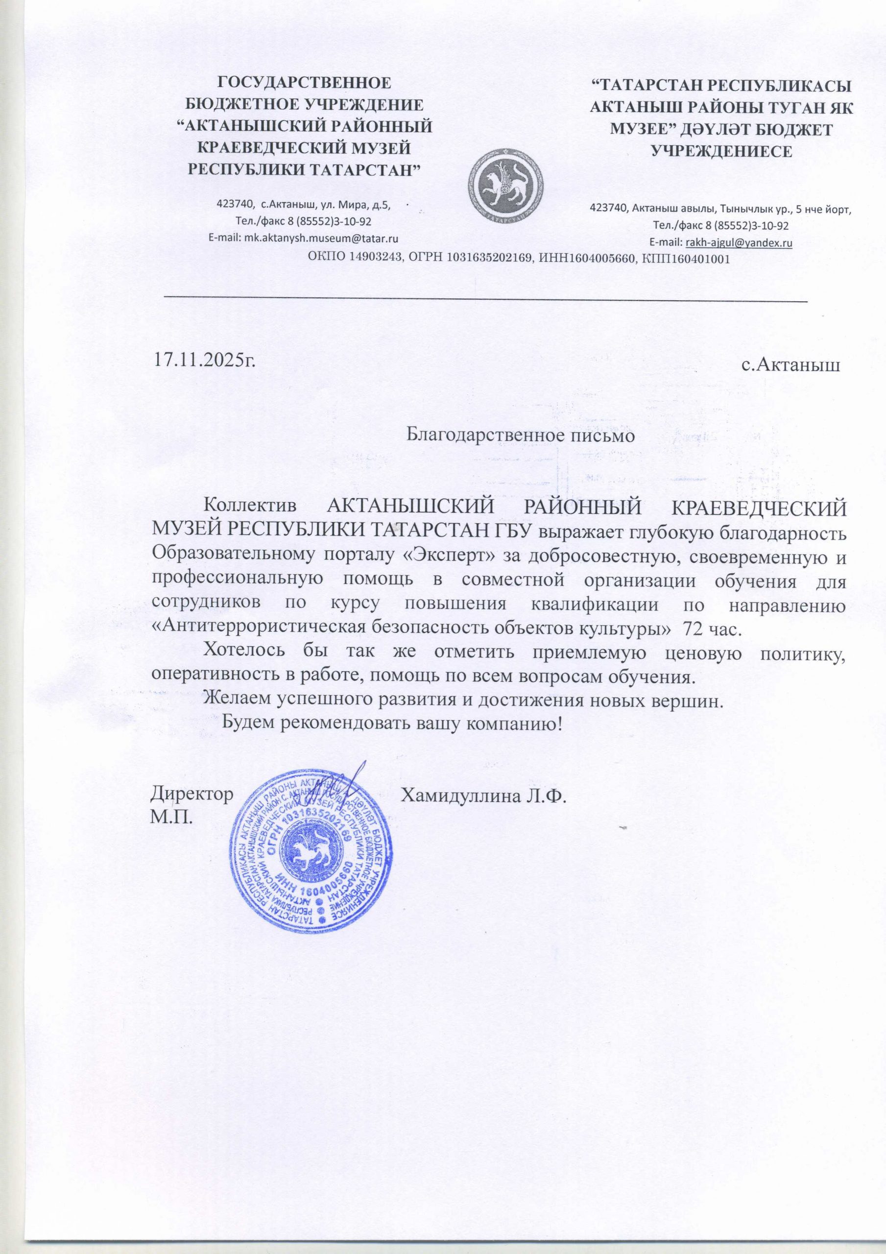 - Более 1000 благодарственных писем от бюджетных и коммерческих организаций
