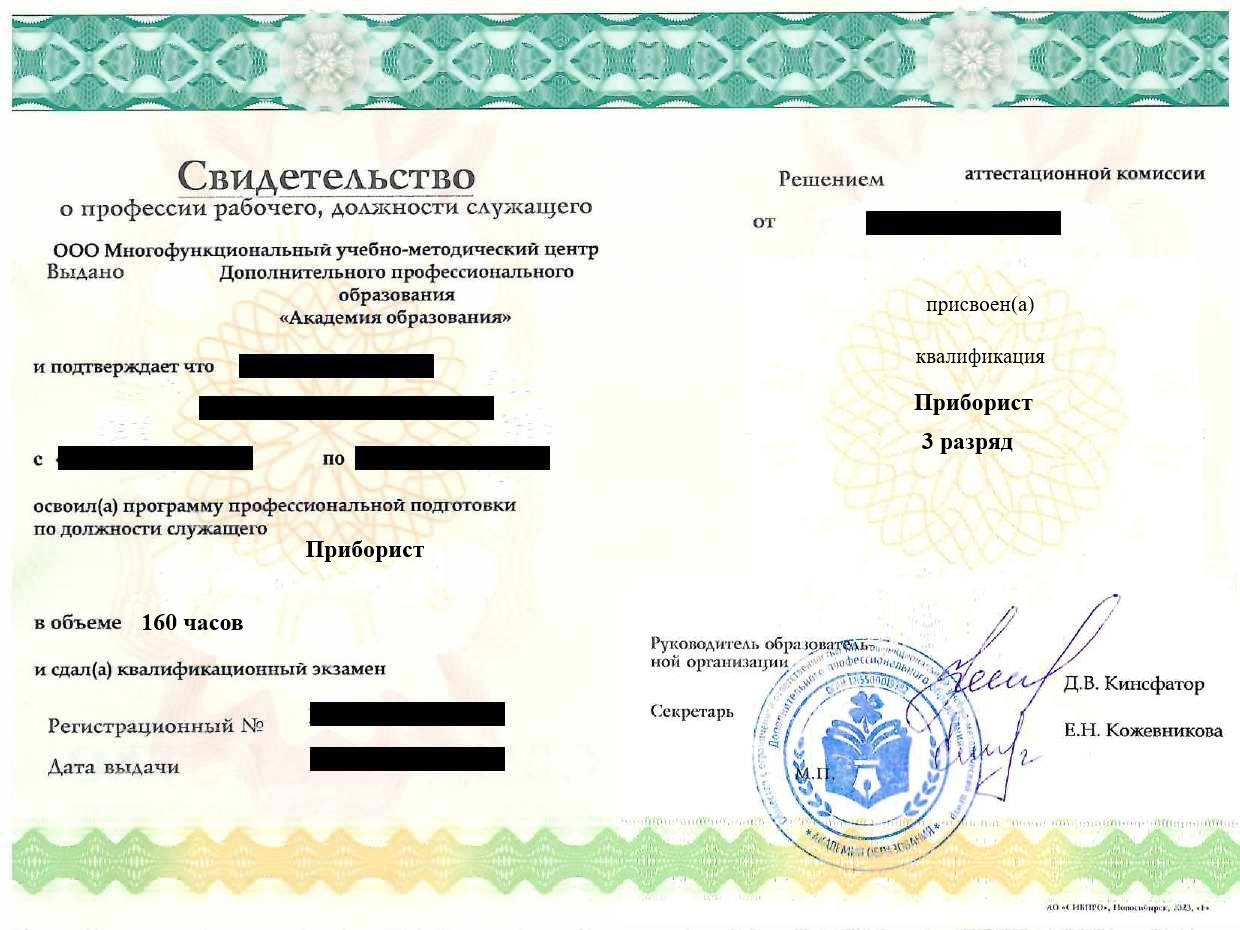 • Свидетельство о профессии рабочего, должности служащего установленного образца. Срок действия: бессрочно